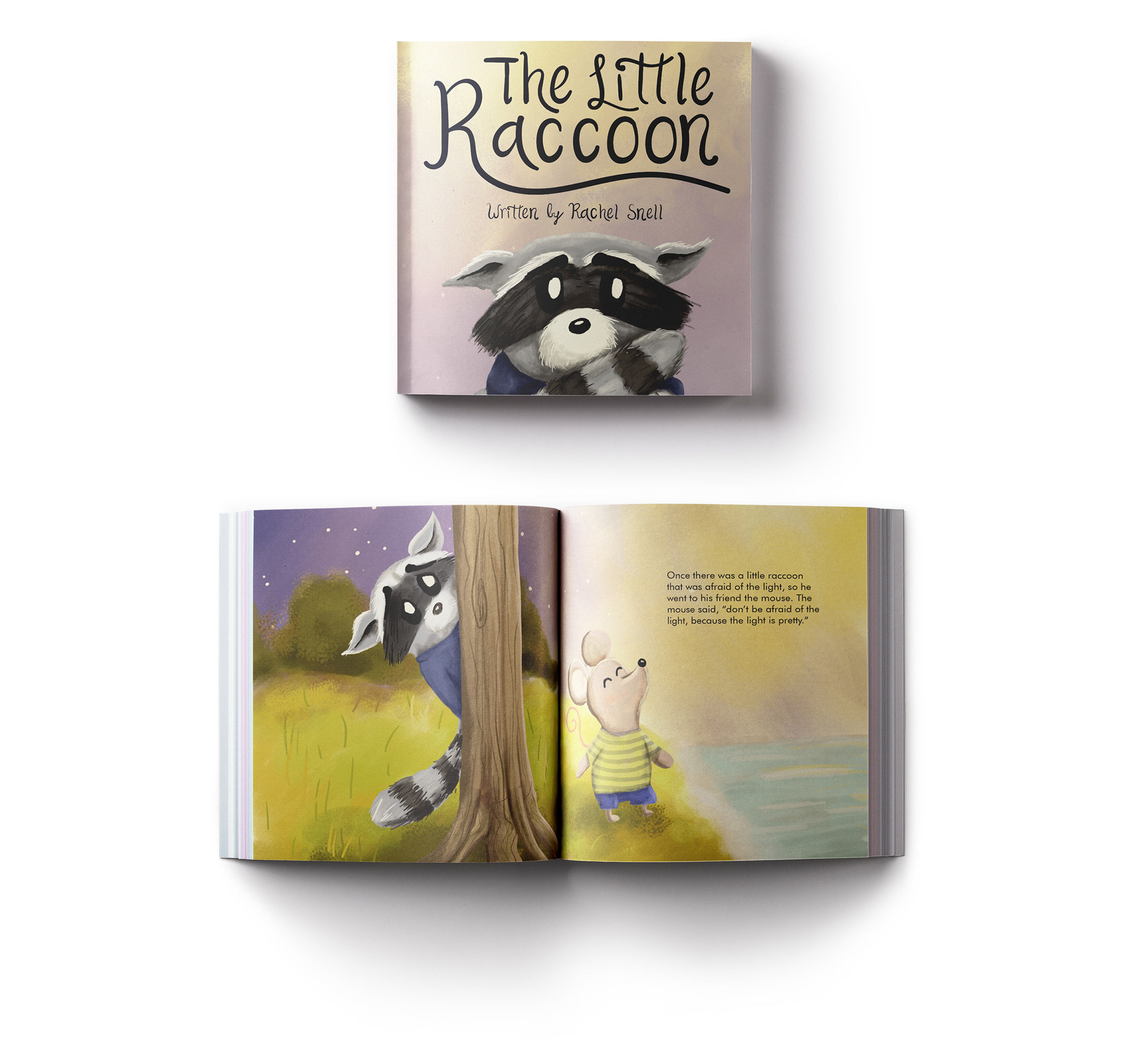 I was asked to illustrate a book for the young author, Rachel Snell. Using a variety of digital painting techniques and brushes, I created a soft, muted color palette that was used throughout the book. All character illustrations were original, based off characters in her story. The actual text was added by the publisher.