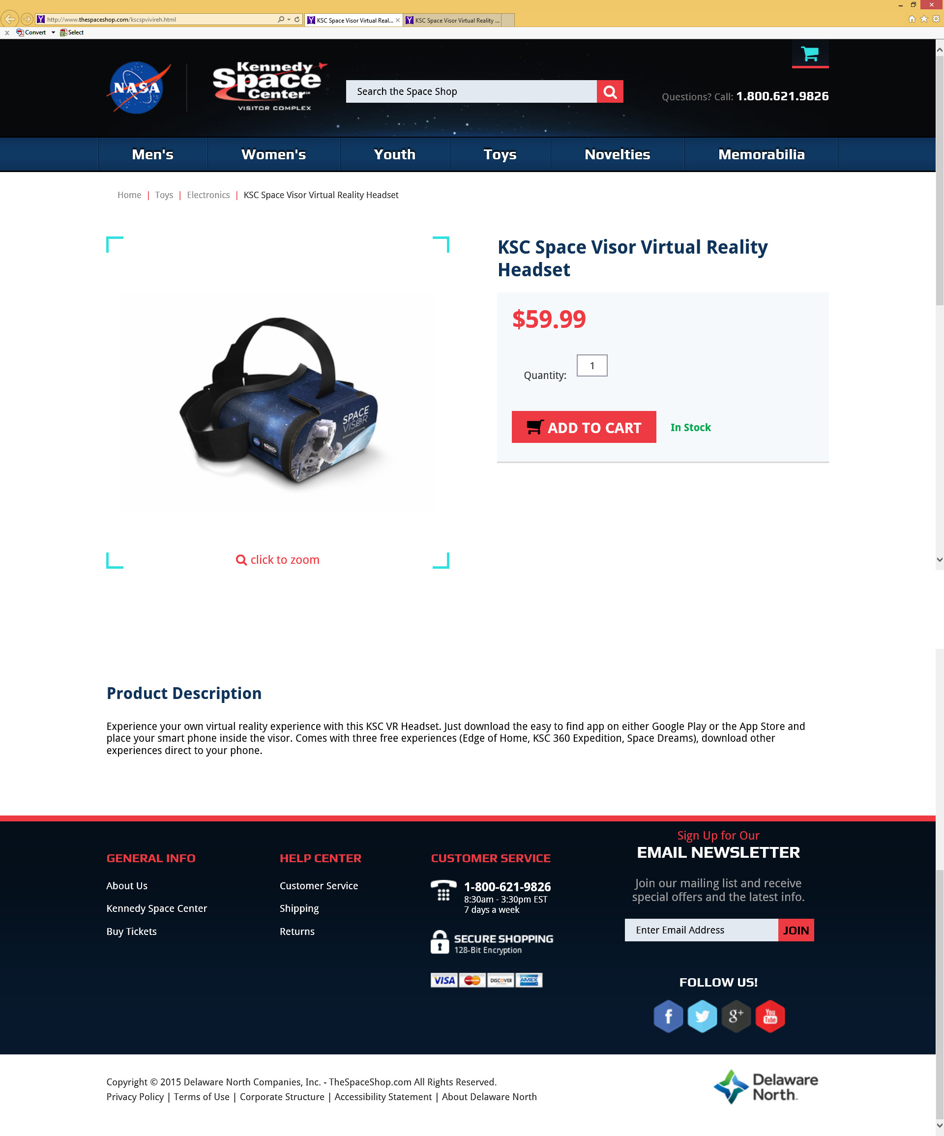 It was a “blast” designing the "Space Visor" Virtual Reality headset sold at the Kennedy Space Center (KSC) online and in their gift shop. The headsets interacted with exhibits throughout the KSC. Using their brand standards, I laid out their design assets to create this fun concept.